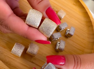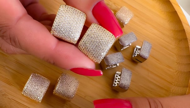 Peças banhadas à Ouro e a Ródio no processo de Galvanoplastia (eletrodeposição de camadas do metal utilizado)